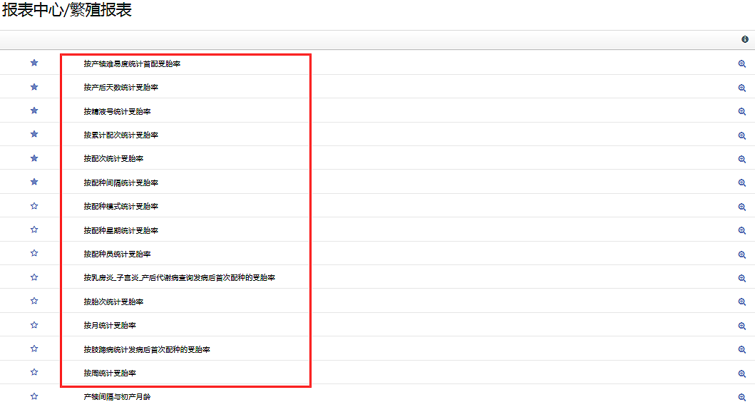 奶業(yè)之星?牧場(chǎng)管理信息系統(tǒng)上關(guān)于受胎率有多達(dá)14個(gè)維度的分析(如下圖),管理者可以逐一查看,從多角度進(jìn)行數(shù)據(jù)挖掘并分析原因,從而制定出最具針對(duì)性的解決方案,避免南轅北轍事倍功半。